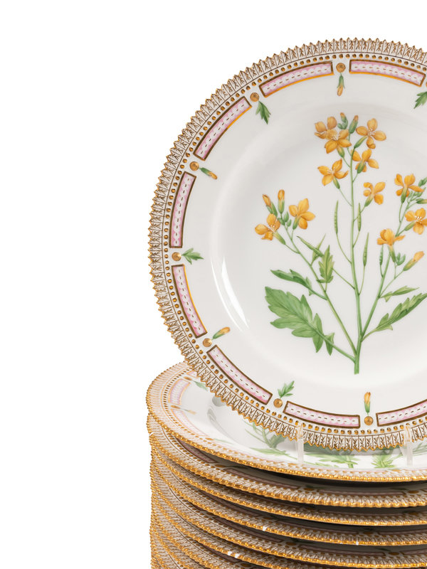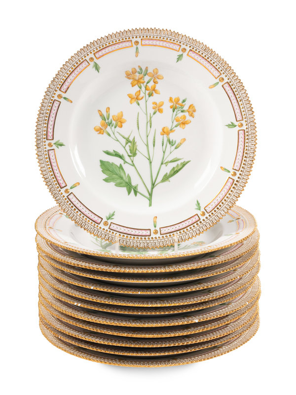 A Set of Twelve Royal Copenhagen Porcelain Flora Danica Dinner Plates