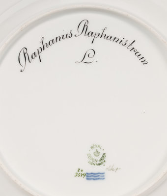 model 3549. decorated with Raphanus Raphanistrum L., Rosa cinnamomea L., Calluna culgaris Salisb. F.D., Viola stagnina Kit., Geranium palustre L., Lathyrus palustev L., Cerastium alpinum L. Bglabratum, Achillea Millefolium L. var rosea Horn., Pulicaria vulgaris Gartn., Rubus vestitus Whe & M. E., Cerasus avium L. and Barbarea vulgaris R. Br.