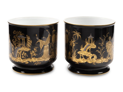A Pair of Le Tallec Nuits Chinoises Porcelain Cache Pots