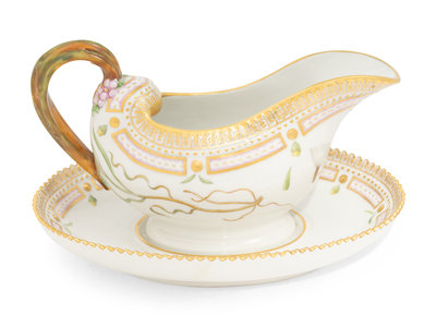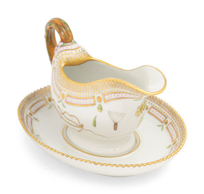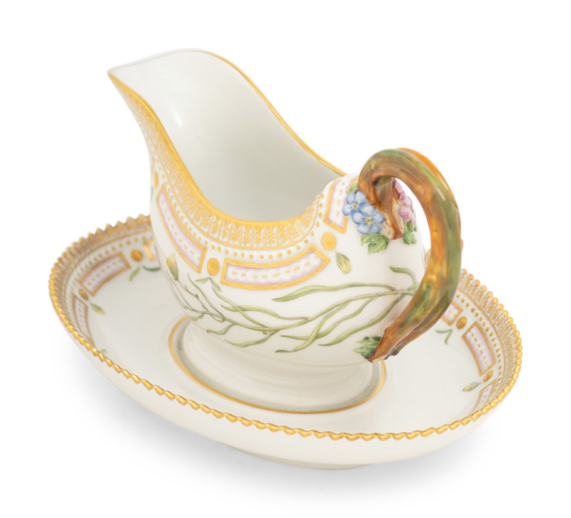 A Royal Copenhagen Flora Danica Porcelain Sauce Boat with Attached Underplate