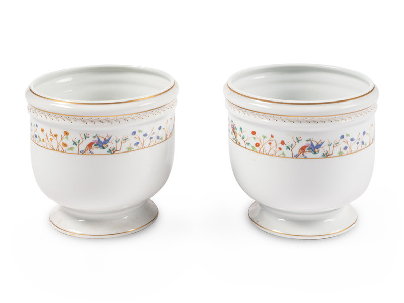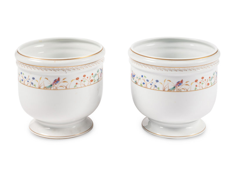 A Pair of Limoges Porcelain Cache Pots in the Audubon Pattern
