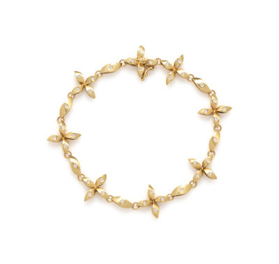 Containing 39 round brilliant cut diamonds weighing approximately 0.40 carat total. 7 1/4 inches long.