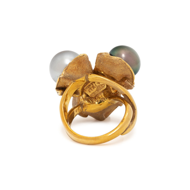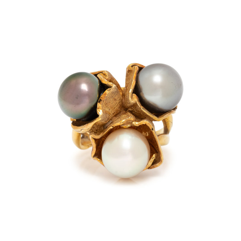 YELLOW GOLD AND MULTICOLOR CULTURED PEARL RING