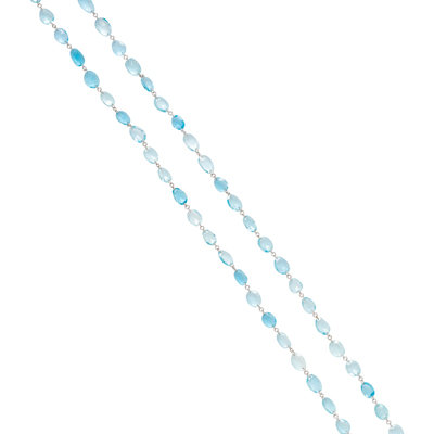 Containing numerous oval rose cut aquamarine beads measuring approximately 8.00 x 5.00 mm. 33 inches long.