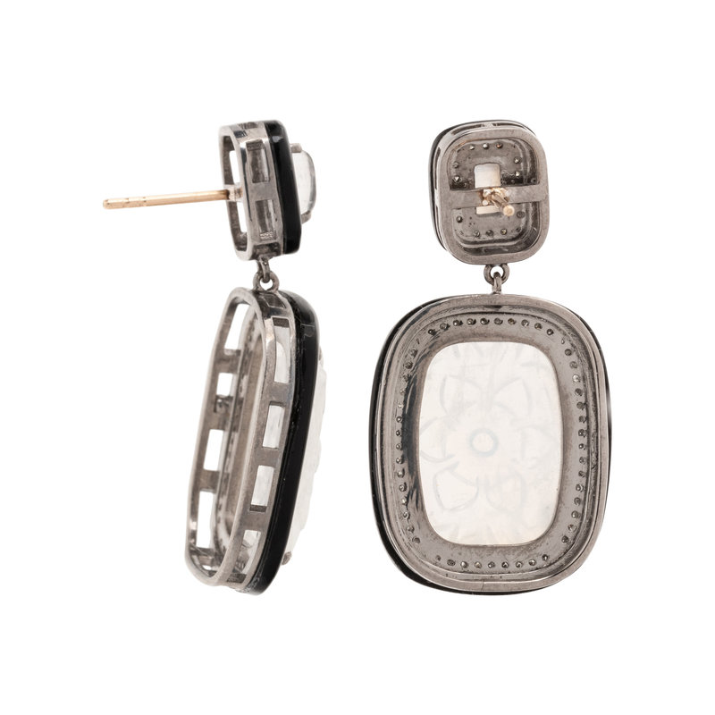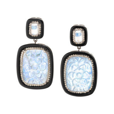 MOONSTONE, DIAMOND AND BLACK ONYX EARRINGS