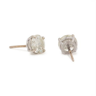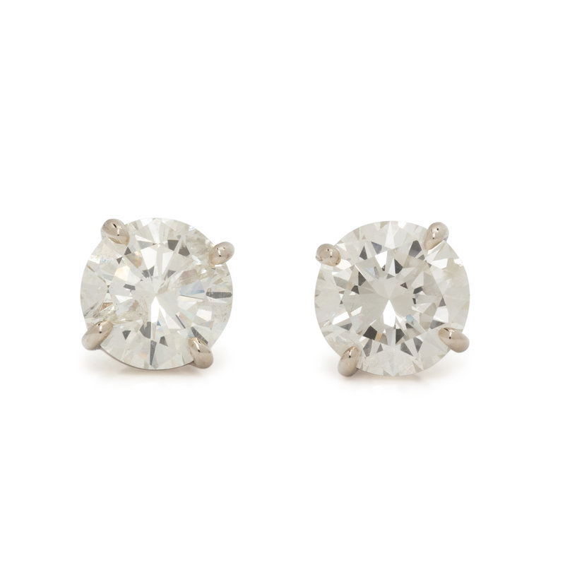 Containing two round brilliant cut diamonds weighing approximately 1.70 carats total. Mounted in white gold.