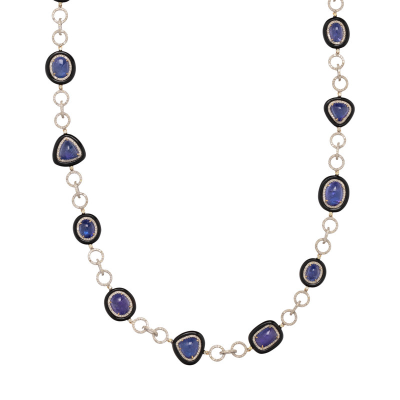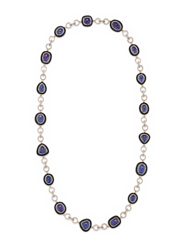 TANZANITE, BLACK ONYX AND DIAMOND NECKLACE