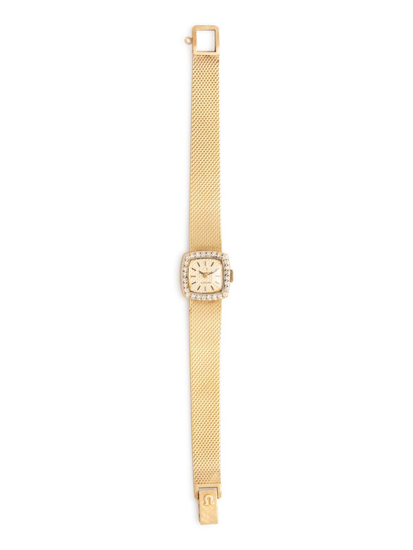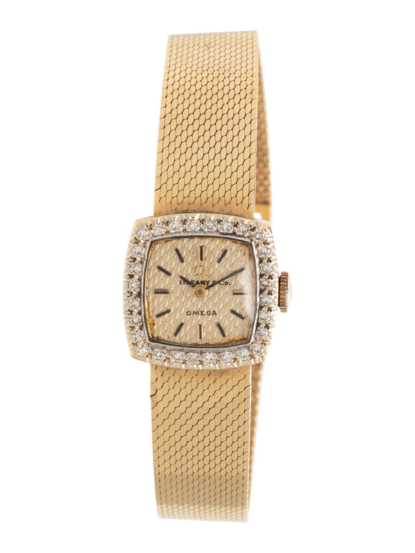 OMEGA, RETAILED BY TIFFANY & CO., 14K YELLOW GOLD AND DIAMOND WATCH