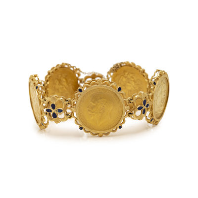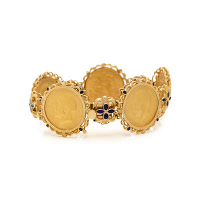 YELLOW GOLD AND ENAMEL COIN BRACELET