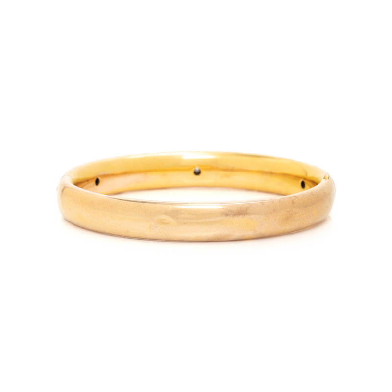 Containing three old mine cut diamonds, hinged with side clasp. 7 inches inner circumference.
