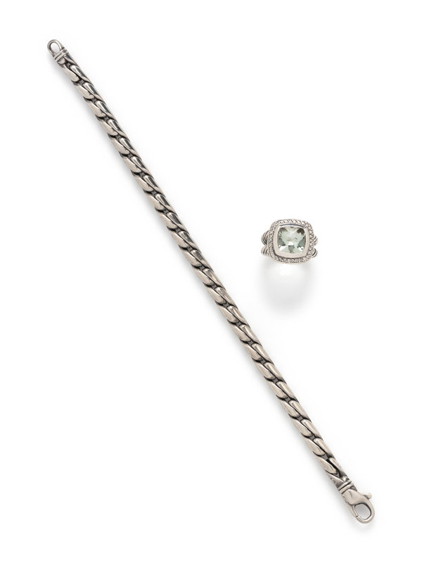 DAVID YURMAN, STERLING SILVER, PRASIOILITE AND DIAMOND RING
