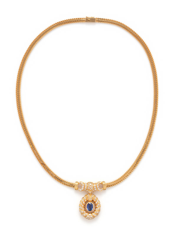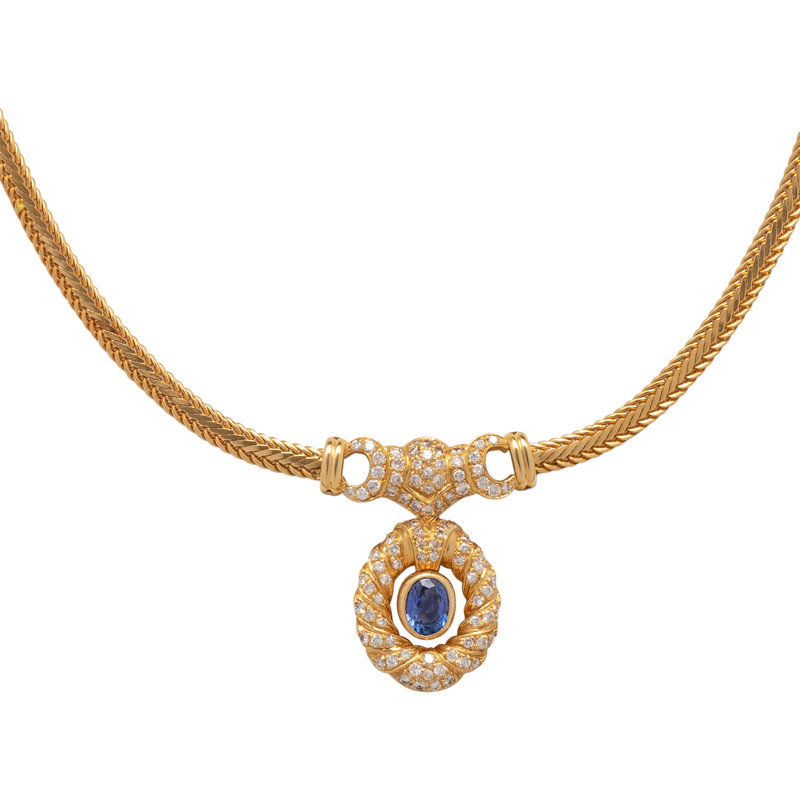 YELLOW GOLD, SAPPHIRE AND DIAMOND NECKLACE