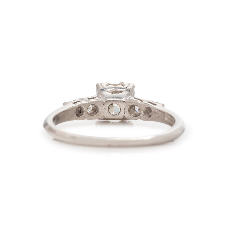 Containing one old European cut diamond weighing approximately 0.50 carat and four round brilliant cut diamonds. Ring size 6 1/2.