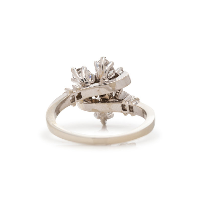 Containing four marquise and ten square step cut diamonds weighing approximately 1.10 carats total. Mounted in white gold. Ring size 6.