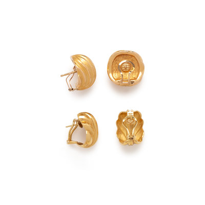 COLLECTION OF YELLOW GOLD EARCLIPS