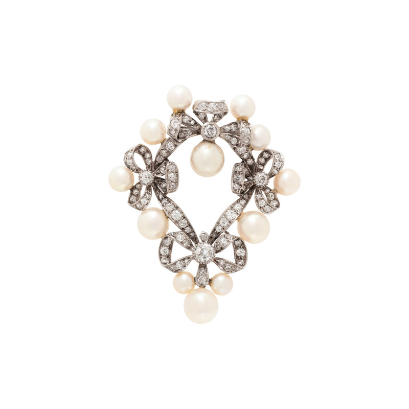 EDWARDIAN, CULTURED PEARL AND DIAMOND BROOCH