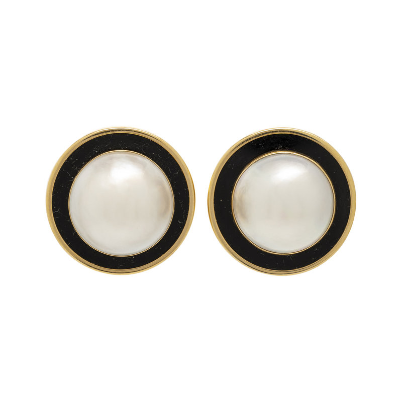 CULTURED MABE PEARL AND ONYX EARRINGS