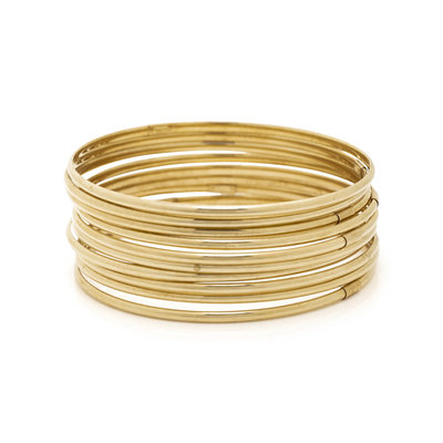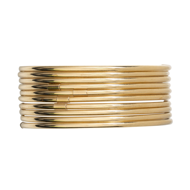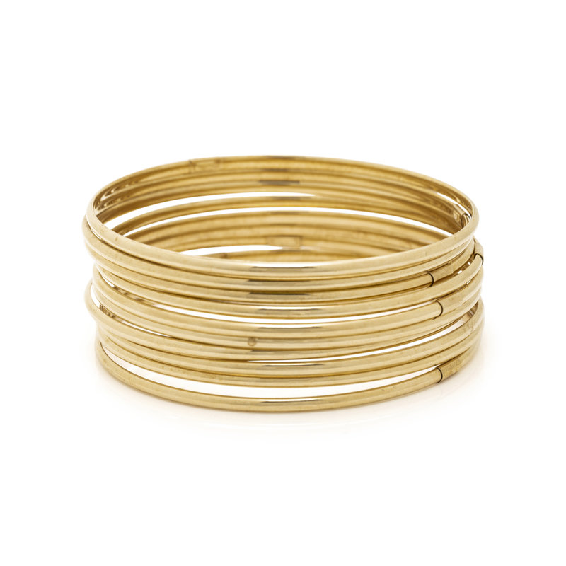 Consisting of ten bangles measuring approximately 2.50 mm wide. 8 inches inner circumference.