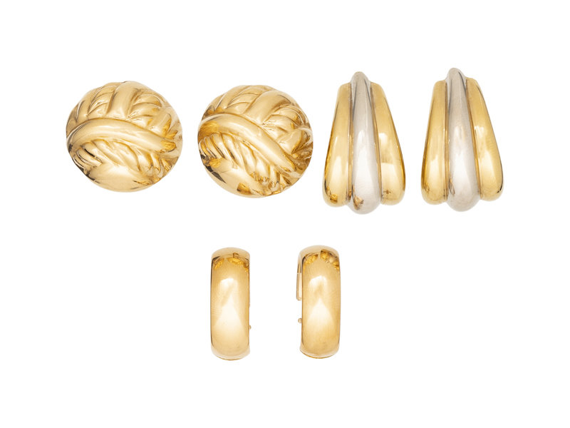 COLLECTION OF YELLOW GOLD EARCLIPS