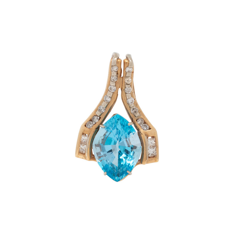 BICOLOR GOLD, BLUE TOPAZ AND DIAMOND PENDANT