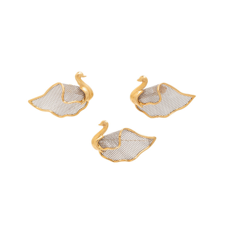 COLLECTION OF PLATINUM AND YELLOW GOLD SWAN JEWELRY