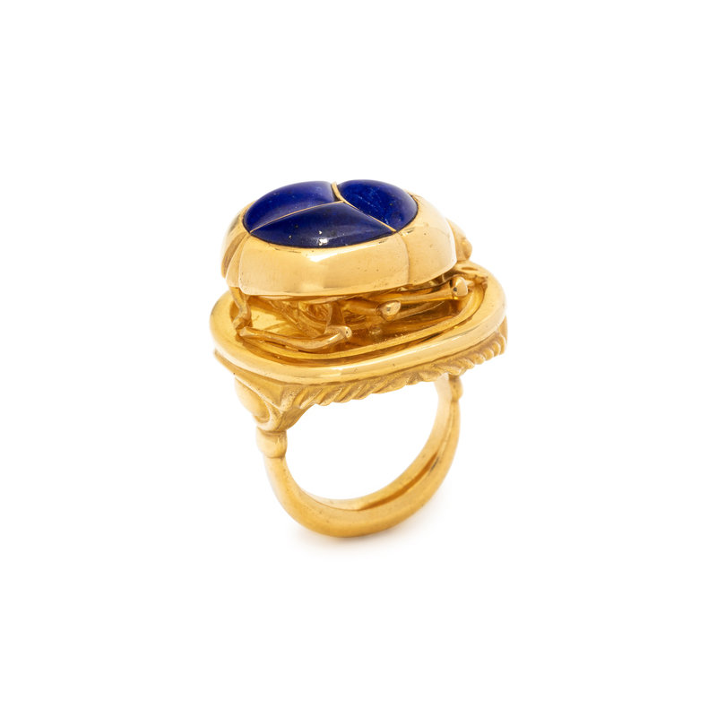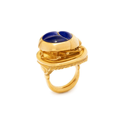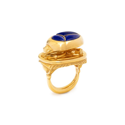 YELLOW GOLD AND LAPIS LAZULI SCARAB RING