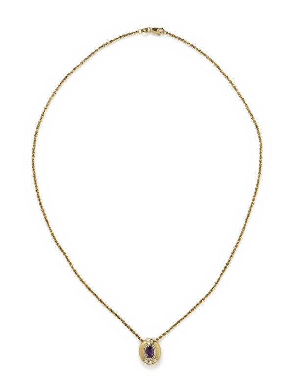 Pink-purple sapphire pendant stamp: 14K.