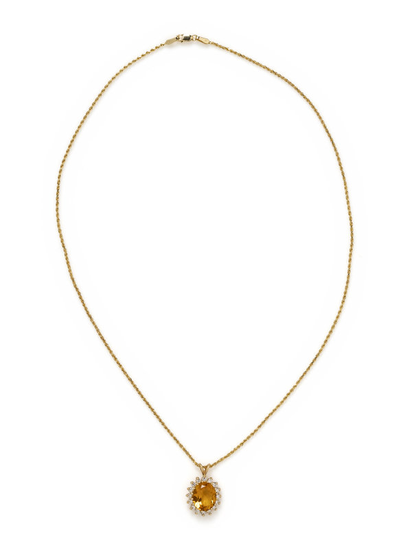 COLLECTION OF YELLOW GOLD, DIAMOND AND CITRINE PENDANTS/NECKLACES