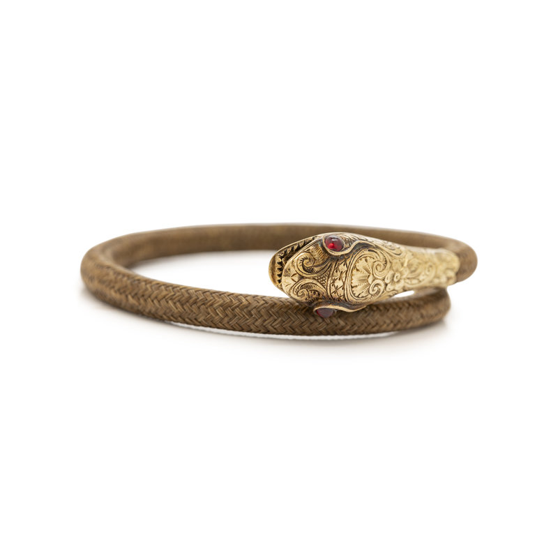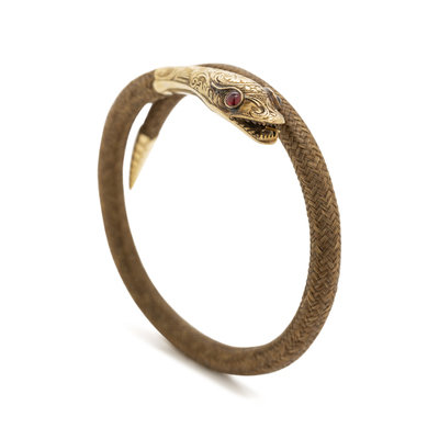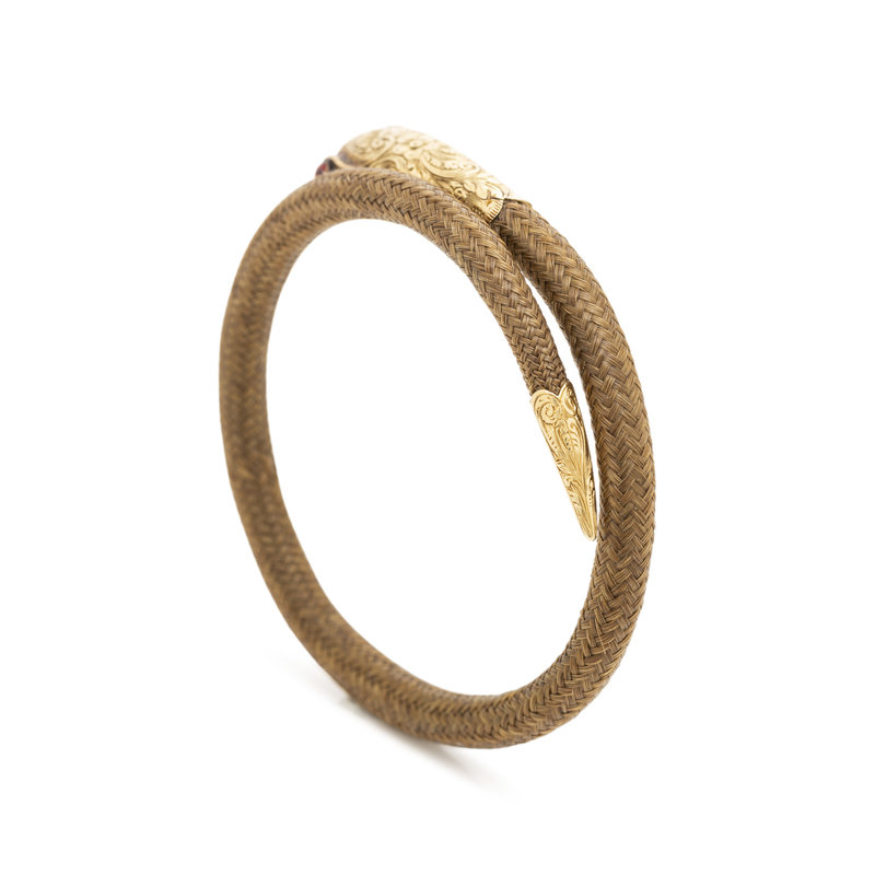 GEORGIAN, YELLOW GOLD AND WOVEN HAIR SNAKE BRACELET