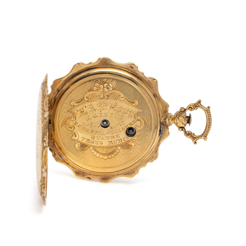 Stamps: Inner case stamp: L. A. P. Bovy A GENEVE No 2037 (French hallmarks) ECHAPPE A CYLINDRE QUATRE TROIS RUBOS.