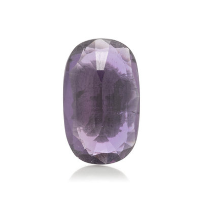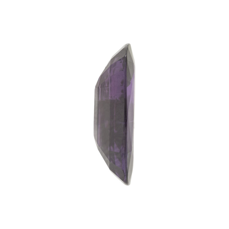 Cushion cut red-purple sapphire, measuring 13.57 x 8.28 x 3.87 mm.