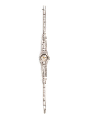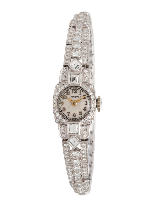 HAMILTON, PLATINUM AND DIAMOND WATCH