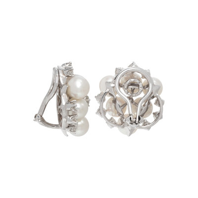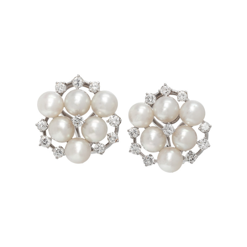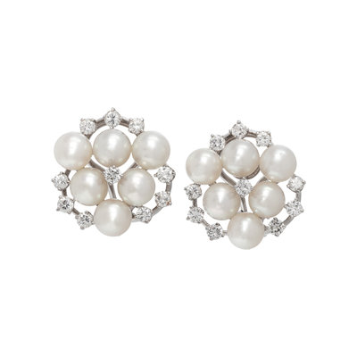 CULTURED PEARL AND DIAMOND EARCLIPS