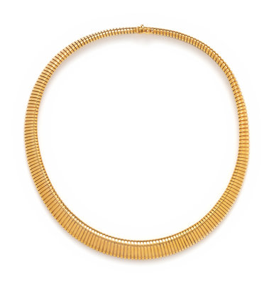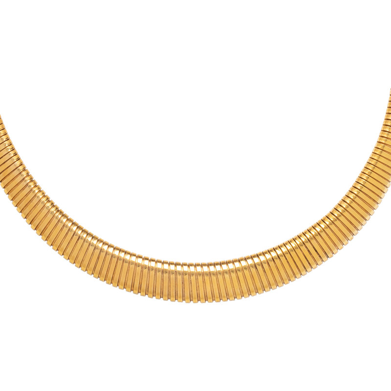 In a graduating tubogas link measuring approximately 6.00-11.00 mm. 17 1/2 inches long.