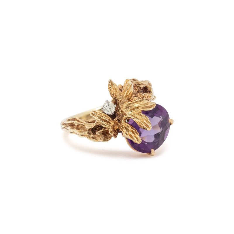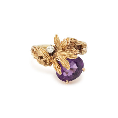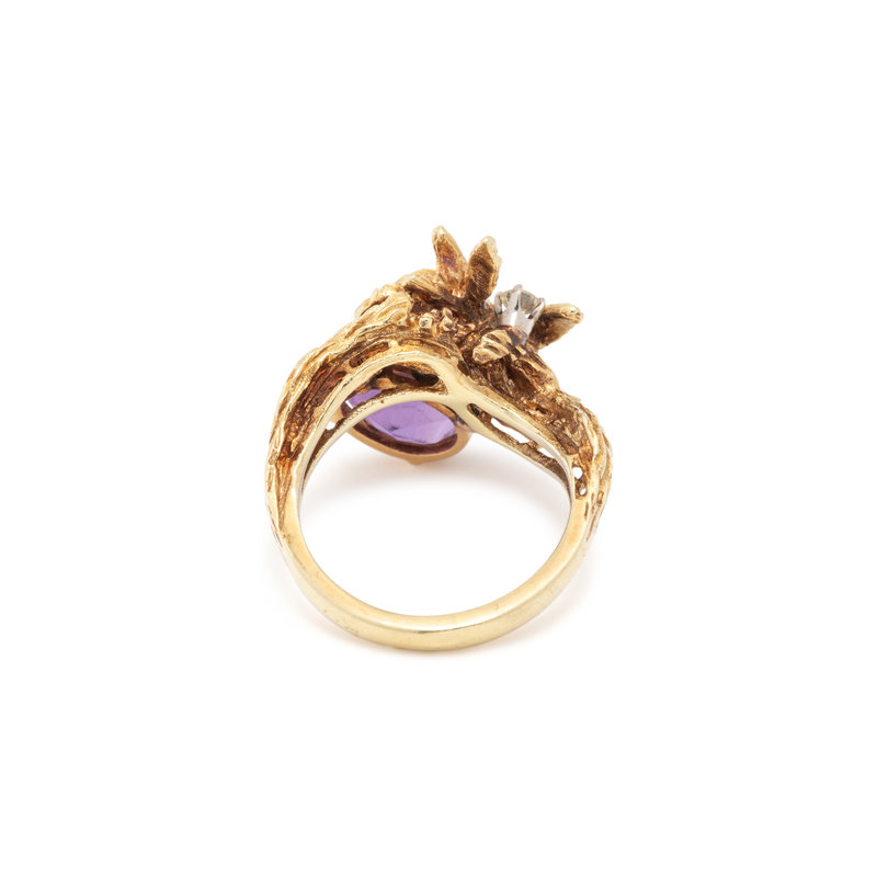 YELLOW GOLD, AMETHYST AND DIAMOND RING
