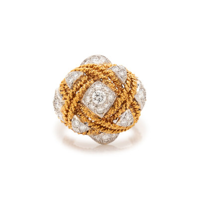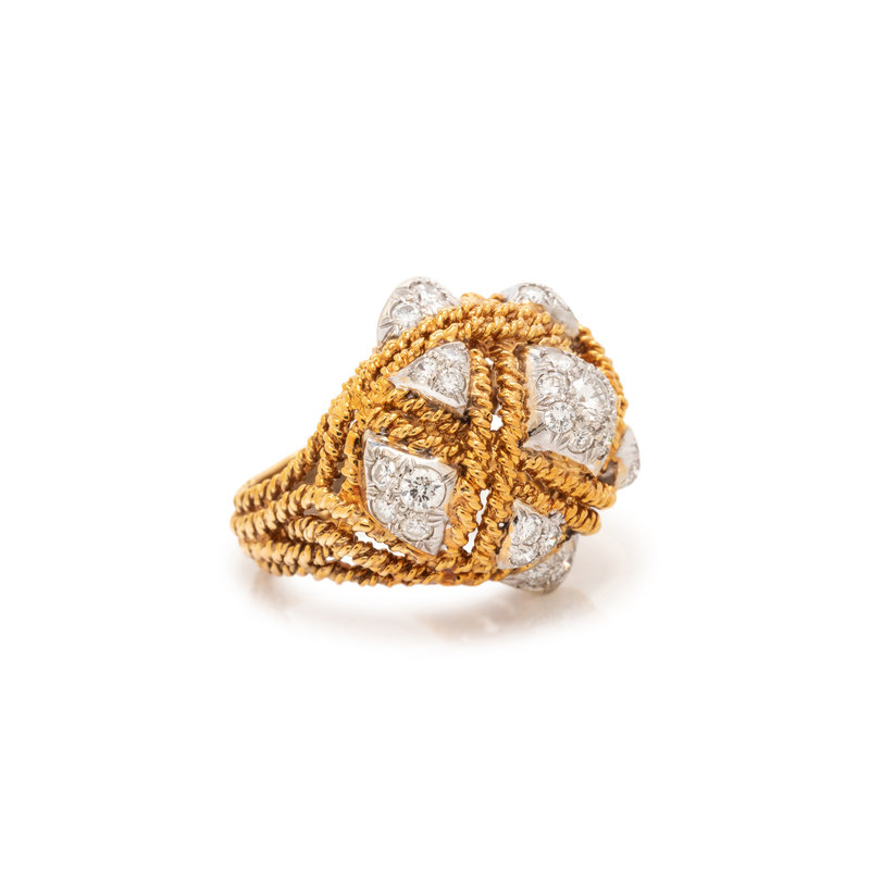 BICOLOR GOLD AND DIAMOND BOMBE RING
