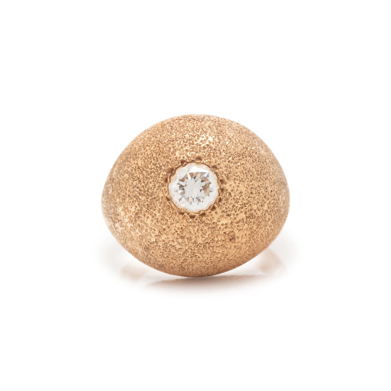Containing one round brilliant cut diamond weighing approximately 0.50 carat. Ring size 6.