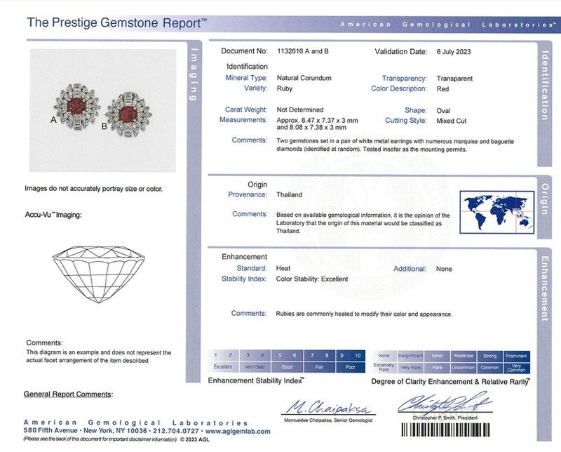 AGL, 2023, Report No. 1132616 A and B, Natural Corundum, Ruby, Thailand, Heated