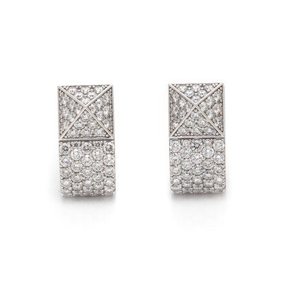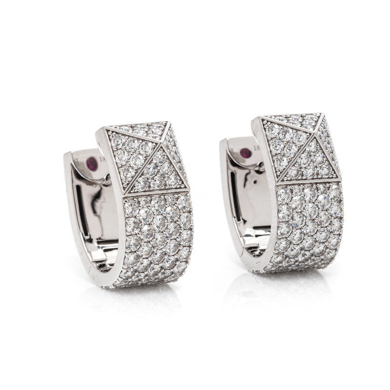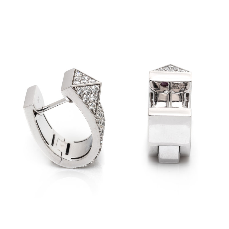 ROBERTO COIN, WHITE GOLD AND DIAMOND 'SAUVAGE PRIVE' HUGGIE EARRINGS