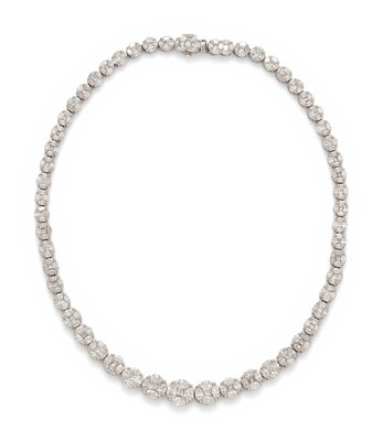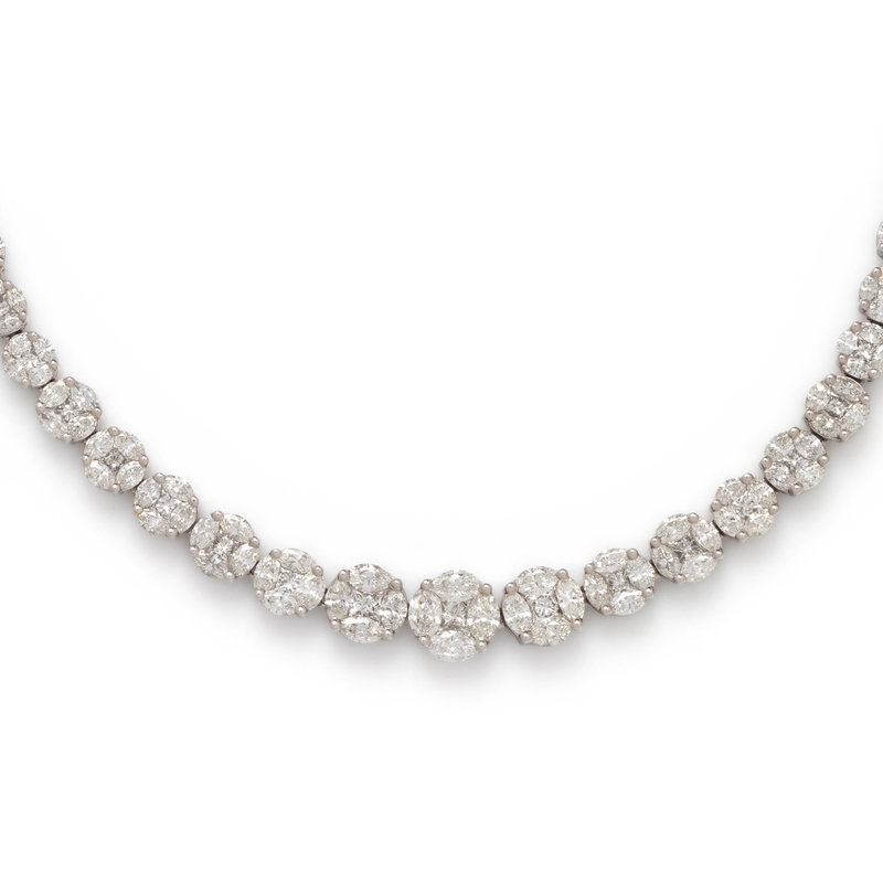Containing 226 marquise and 57 princess cut diamonds weighing approximately 41.00-42.00 carats total. Mounted in white gold. 17 inches long.