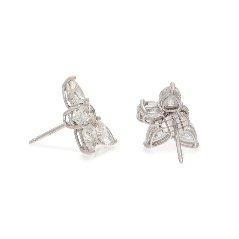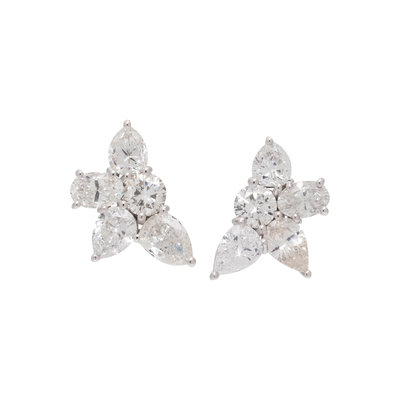 Containing six pear shaped, two round brilliant and two oval brilliant cut diamonds weighing approximately 5.80 carats total. Mounted in white gold. 3/4 inch long.