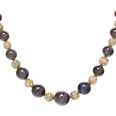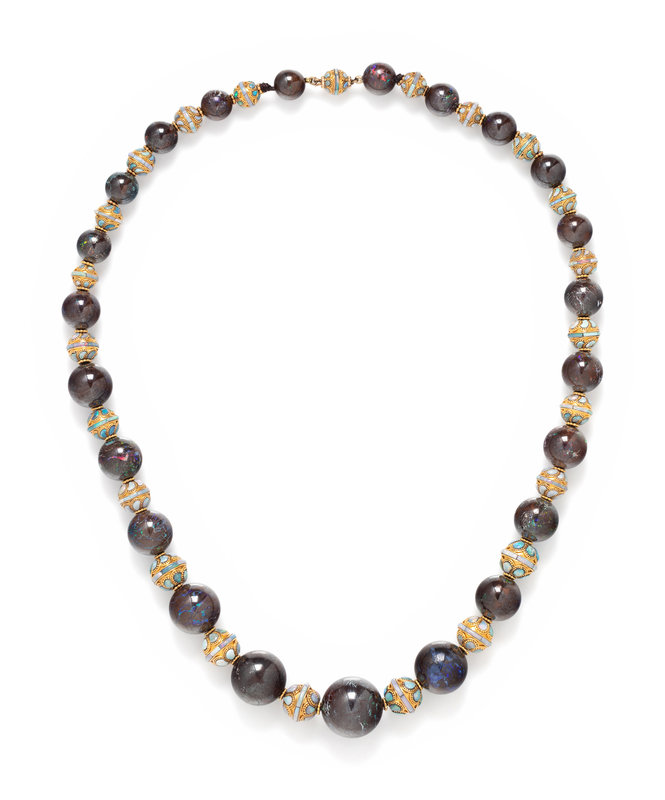 TIFFANY & CO., ART NOUVEAU, YELLOW GOLD, OPAL AND BOULDER OPAL BEAD NECKLACE