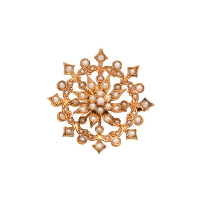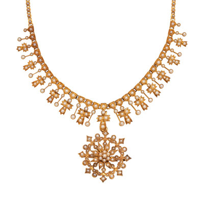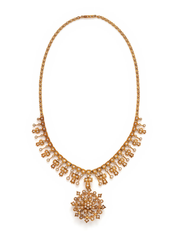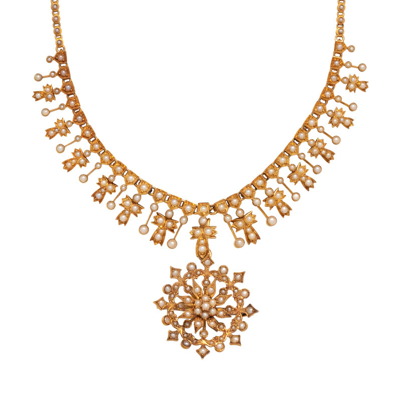 ANTIQUE, YELLOW GOLD AND SEED PEARL PENDANT/NECKLACE