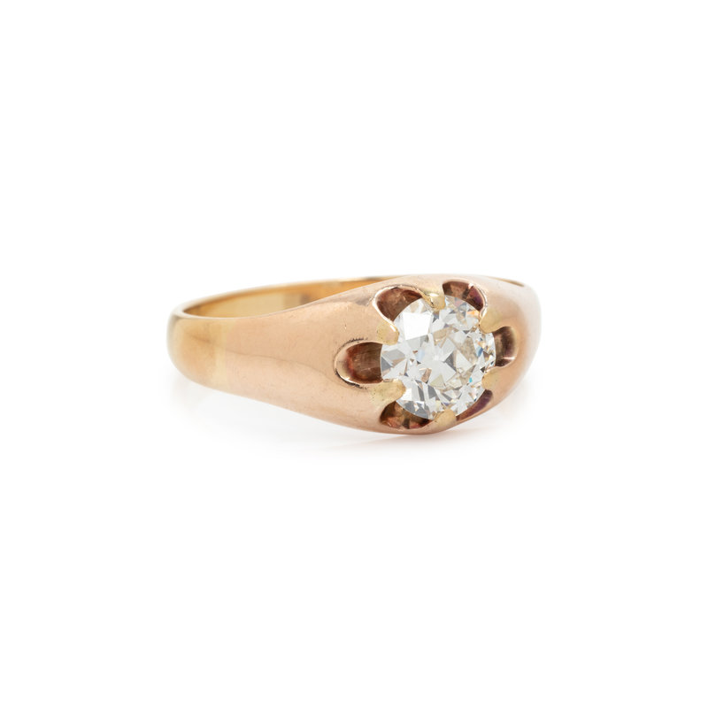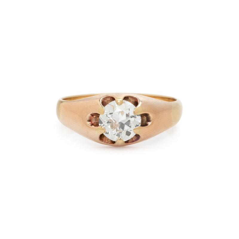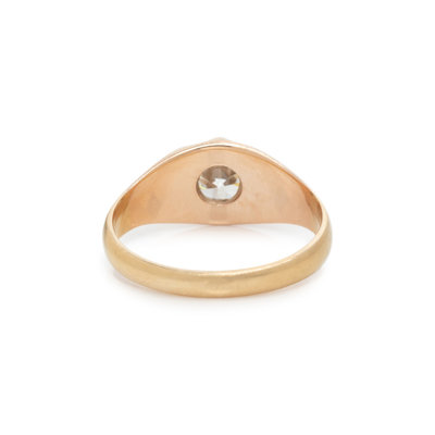 Containing one circular brilliant cut diamond weighing 1.50 carats. Mounted in yellow gold. Ring size 11 1/2.