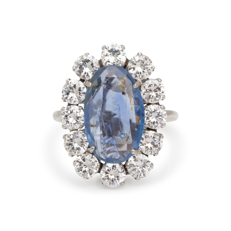 UNHEATED CEYLON SAPPHIRE AND DIAMOND RING