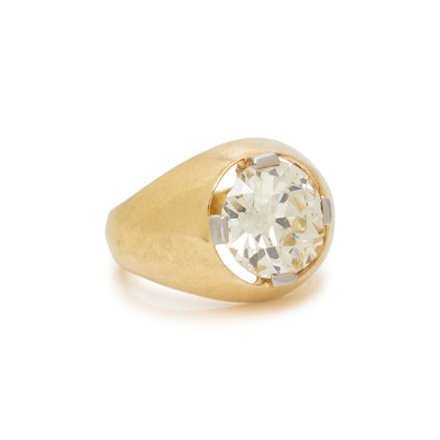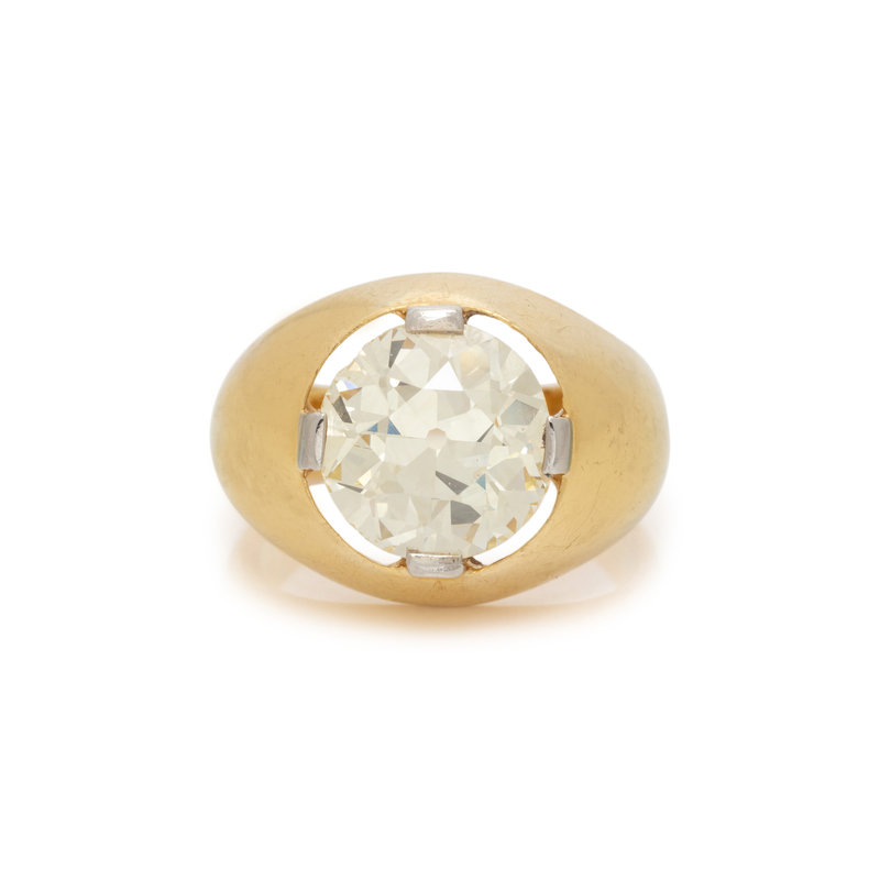 Containing one old European cut diamond weighing 4.25 carats. Mounted in yellow gold. Ring size 6.