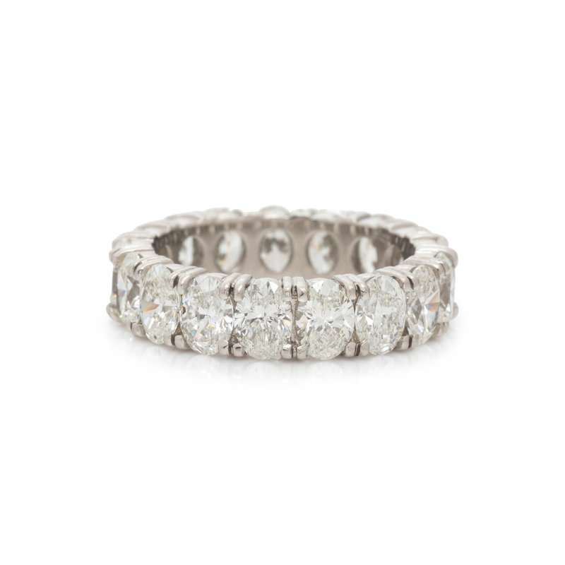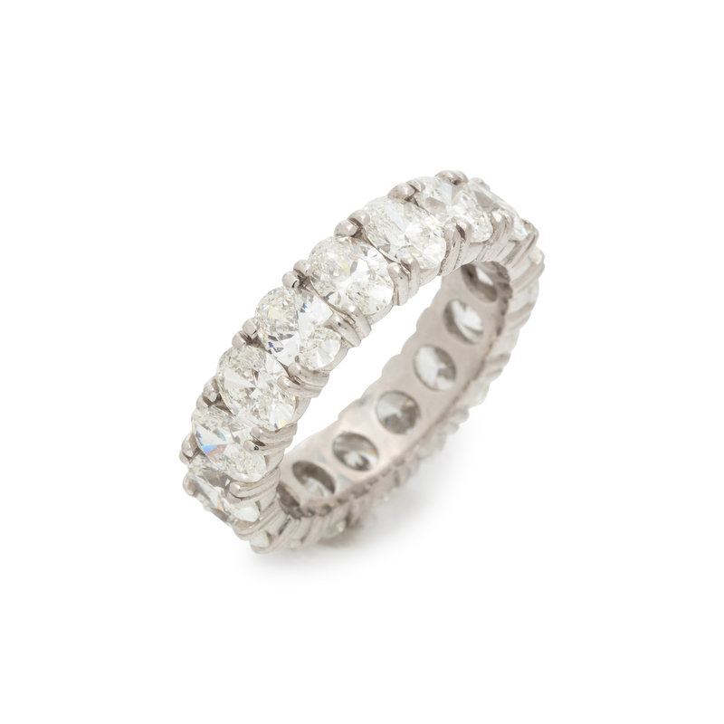 Containing 17 oval brilliant cut diamonds weighing approximately 5.60 carats total. Mounted in platinum. Ring size 6 1/2.