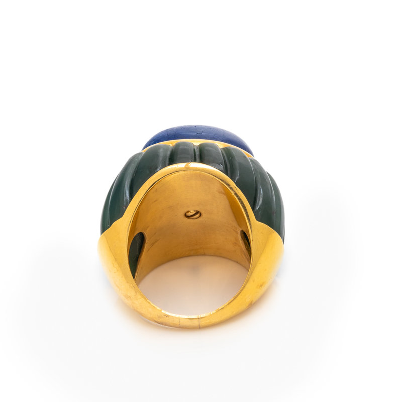 SAPPHIRE AND NEPHRITE JADE BOMBE RING