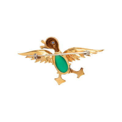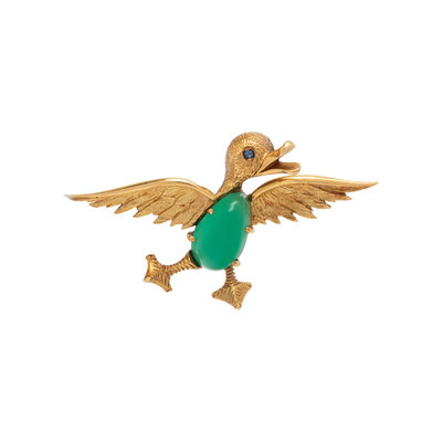 FRENCH, YELLOW GOLD AND MULTIGEM DUCK BROOCH