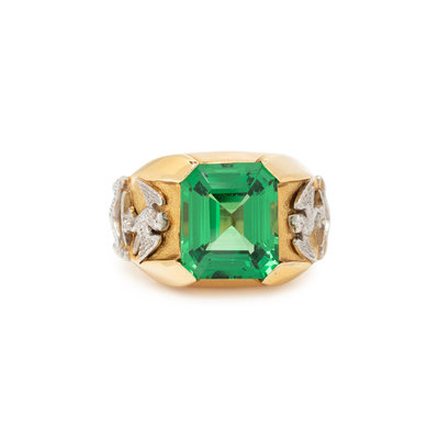 JULIUS COHEN, BICOLOR GOLD AND TSAVORITE GARNET RING